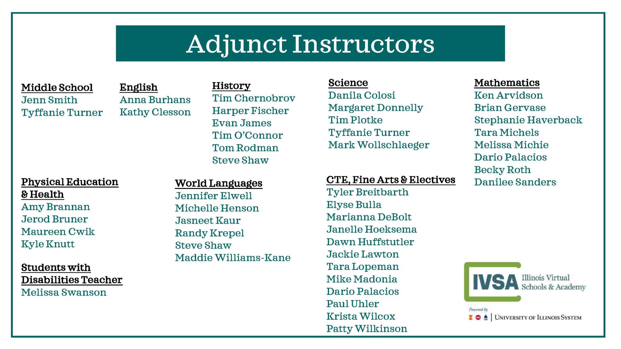 Stephanie Rahimi is a MATHEMATICS teacher for IVSA. Mrs. Rahimi is a graduate of the University of Illinois (I-L-L) with a Master’s in Educational Technology. This is her 10th year teaching high school and 8th-grade math. Mrs. Rahimi is thrilled to be a part of IVSA and is excited to help make math enjoyable for all students. You can often hear her saying “go math!” whenever we use math in the real world. Mrs. Rahimi enjoys rooting for the Illini sports teams, going on adventures with her three children and husband, working out, and trying DIY projects.