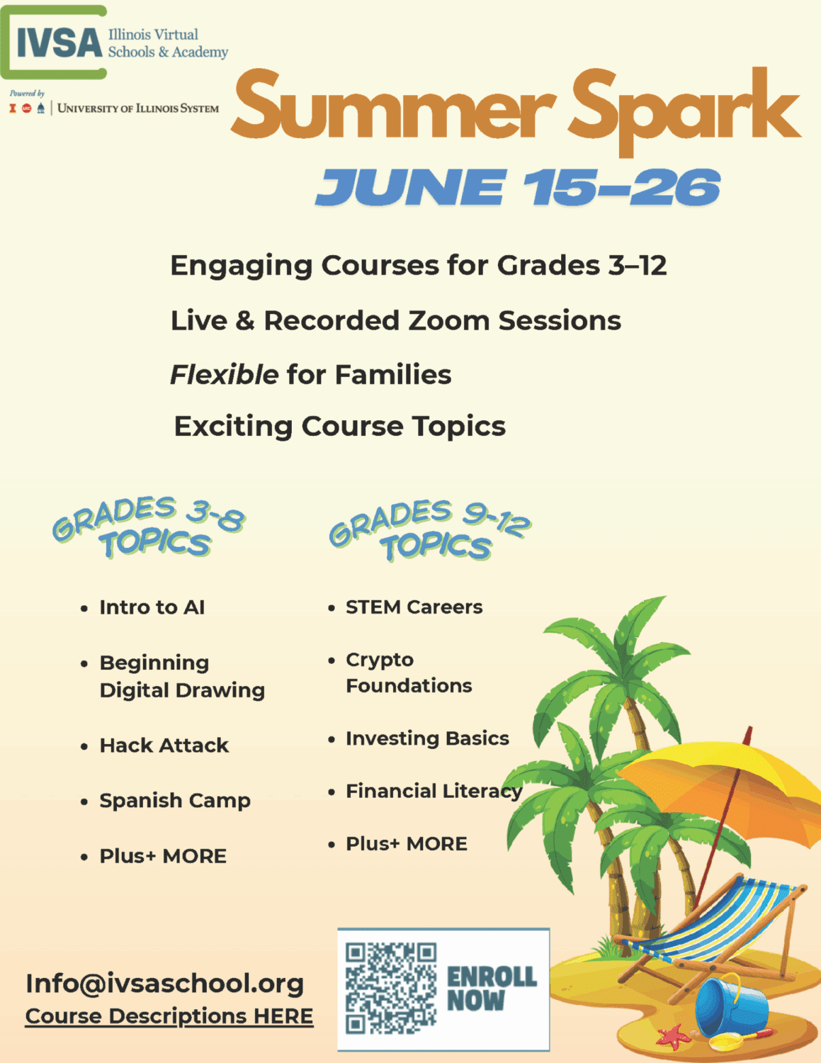IVSA offers diverse summer programs including Spanish camp, Summer Bootcamp for skill development in math and reading, Credit Recovery options to regain academic standing, and Traditional Summer School courses for continued learning. These flexible online programs cater to various student needs and learning goals during the summer break.